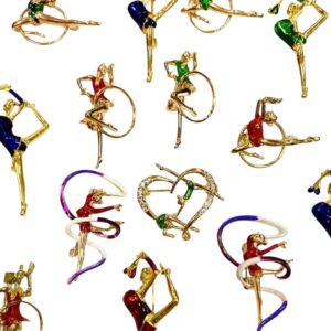 Большой выбор полотенец, брошей, брелоков, косметичек, печатной продукции, спрей-бутылок и многого другого с гимнастической символикой.